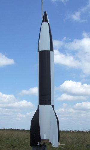 A "bag of parts" clone kit, in this case a reproduction of the K-22 V-2. For many modelers, this was their first introduction to scale model rocketry. The V-2 was a German developed missile, and as WWII drew to a conclusion, it was the most capable rocket in the world. When America brought Werner von Braun and his crew over from Germany, the V-2 knowledge gave us the much needed jump start to move towards the space age.