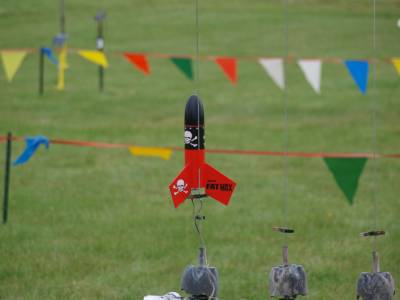 A second D12-5 was made at NARAM 55 in conditions that were the complete opposite of the first flight. This time the winds were calm, so the flight was high and straight, topping out somewhere near 800'. Once again the ejection charge fired as it was nose down, but this time the drift was minimal, and the Max landed on the forbidden area just behind the sport range. Plans at this point are to try a C11 the next time out. This bird does "low and slow" well enough that it can't be discounted for a B6-4 Field flight if conditions are right.