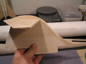 1/4" hardwood, rounded, and all trailing surfaces have to be heavily beveled. The rudder alone requires 1/4"