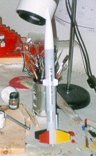I launched the rocket on a hot windless day in June. What can I say, a flawless flight and recovery. The rocket leap into the sky on an A8-3 and almost disappeared from sight, on a A8-3!! But it got better, when the ejection charge blew at apogee (no ugly wadding thanks to perma-wadding) the rocket descended on it's nylon parachute for one of the most perfect recoveries I ever witnessed, I would say majestic even though the rocket is a little over a foot. (I flew it again two weeks ago on a C6-5, out-of-sight, and recovered.)