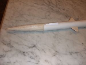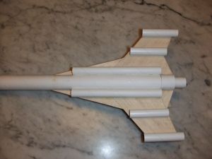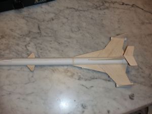 Brief: A "carbon copy" of a Centuri classic by Semroc. The long booster loaded with "ramjets" releases a very cool looking glider at ejection and returns via 2 12" parachutes. Semroc provides all the parts including beautiful resin ramjet cones, laser cut fins, and decals. Instructions are not included but may be downloaded off the Internet. Construction: ...