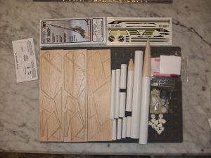 Wing/fin assembly is a fair amount of work, and you'll want to carefully review which piece is which before beginning. The Semroc laser-cut parts are accurately dimensioned, but they are nested differently on the sheet, and two of the parts include a spare.