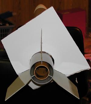 are 2 centering rings made of sturdy plywood, and 3 G10 fins. There is a