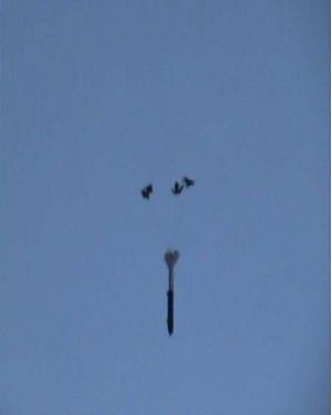 All 3 chutes deployed but the high winds promoted a bit of tangling. Even so, the rocket recovered safely and would have been ready to fly again with minimal prepping. Even so, it did not get to fly again this day because of weather concerns and the time it would have taken to straighten out the chutes.