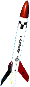 This bird is a LOT of fun to fly on the C, so another one was loaded and the Tangent racked again. Same results except that it cocked a whisker as it left the pad. Consequently it leaned over about 10 degrees from vertical; it was actually moving pretty fast when ejection came. Another long walk was necessary to get it back!! On retrieving it, the only apparent damage was a little soot on the fins. GREAT flyer, 5!!