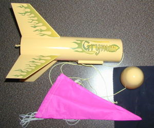 Rocket PicThe Grymm qualifies as a "stubby" rocket because it is 15" long and has a 2.88" diameter giving it a less than 10:1 ratio (5.2 to be exact).