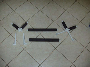 As delivered, my rack consisted of the parts shown to the right. The following photos show it partially assembled and completed. The instructions say to glue it together using PVC glue if you are going to transport it much. It seems to hold together fine and I want to disassemble it for transport, so I did not do so. If it gets too loose I may glue some of the connections.