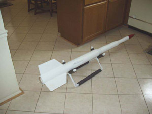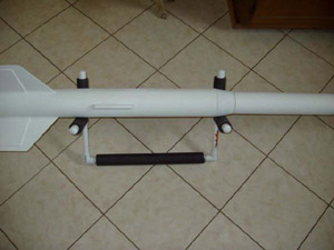 The final two photos show a reasonably large rocket on the stand. I have no idea how much weight it will hold, but I suspect that it will hold almost any rocket in my fleet that is over 18" long and whose fins have a span less than in 12" (more if it is a three fin rockets).