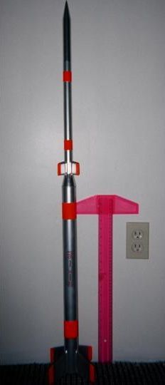 How one finishes this rocket is optional. Finishing it with the scale paint scheme is a challenge. The main color is aluminum (flat silver). The transition and the top of the payload section are chrome (shiny silver). The stripes are fluorescent orange (exact dimension are in the instructions).