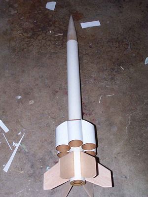 When the fins had dried, I checked to see how well the booster stage fit into the sustainer. I found it to be a bit tight but a little sanding took care of that. With that, the rocket was built and just awaited its livery.