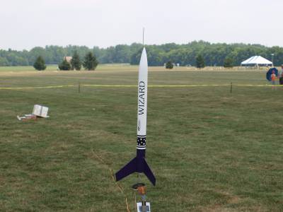 BT-80, E-powered 3.5x upscale of the Estes Wizard, one of my favorite rockets of the 70's.  As you might imagine, this was a fairly simple build, but that didn't stop me from finding a way to make a "gotcha" of my very own.   I started the build back in 2002 after attending NARAM 43 with my brother-in-law.  Tony had brought an Estes Phoenix to NARAM, and while we were sitting by the car between flights, a mystery man walked up with a package of mystery motors and asked if Tony would like to try them in the Phoenix.  The packaging was obviously Estes, but all identifiers were whited out, including the card that identified the impulse.  I don't remember if Tony ever flew the Phoenix that weekend, but I do remember thinking how cool an upscale of a minimum diameter Estes kit would fly on one of them.  The Wizard, the bird that dropped my jaw on a C6-7 back in 1979, sounded like the perfect rocket to start with.  Issues with upscaling the decal kept my interest level low for quite a long time, but that all changed recently when I found that Excelsior Rocketry offers the BT-80 decal, and it really changed when the decal arrived and I saw how great it looked.  The only problem is that now I know that someone else likely has one of these sitting around somewhere.Wink