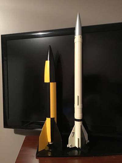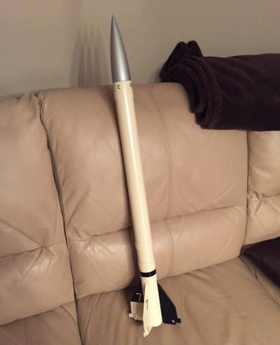 This was my first cluster rocket. In a attempt to mimic the real Viking 7, a few details are included, which likely increase its drag, and maybe that's part of the reason it uses two motors. But then, to compensate for the additional motor weight, it runs long at over 29". All in all, it makes for a surprisingly beautiful kit with a very unusual colour scheme.