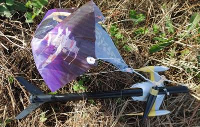 The Star Wars themed plastic chute deployed, albeit a bit tangled with the shock cord. Although not the chute was not fully deployed, the model came down safely and intact, ready for another flight. The Naboo Fighter itself had slid up the body tube; tape around the tube would be advised so that you still have a nice Naboo Fighter to display between flights.