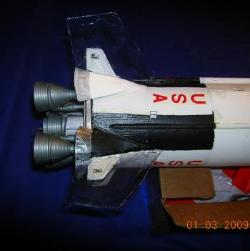 4) Then a 24" chute packed next, and finally th 36" chute in top section of bt. Tape nose cone for a tight fit.** With any luck, 12" chute will pull out 24"chute, and main body will pull out 36" chute.