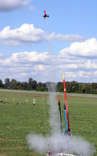 Maiden flight occured on 09-09-07 at Michigan International Speedway at a J.M.R.C. club launch on an Estes B6-4. Rocket was almost a blurr as it left the pad. Nice high flight with parachute ejection just past apogee.