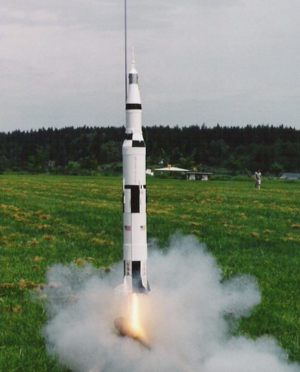 While I'm naturally unhappy about the untimely demise of my 29mm Saturn V, I consider the modification a complete success. The engine mount demonstrated impressive strength in surviving the impact, so it should easily hold up to the 'normal' forces of numerous 'F' and 'G' powered launches. The 22" CG location provided a highly stable launch (in fact I could probably get away with less nose ballast), and the launch with an F engine was spectacular (so was the descent, but for the wrong reasons). While this Saturn is damaged beyond "economic repair", I've salvaged the resin fin-fairings and Apollo capsule, and construction has already started on another 29mm Saturn V.