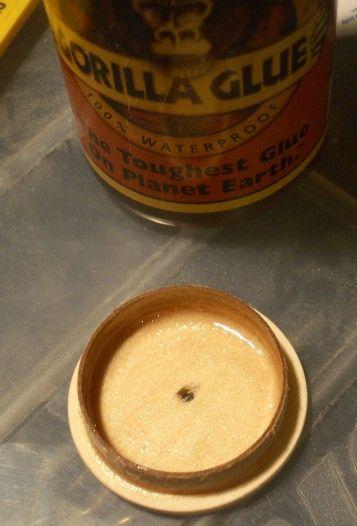 Glue the coupler to the disk. I used Gorilla Glue, but have since decided that this was overkill since there is not much load on this joint. Simple wood glue would have been sufficient.