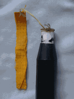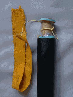 This is the coupler to Stage 4. Cut a strip of Nomex 140mm x 18mm and tie it to the coupler using the kevlar shock cord. (This is too small to be a proper streamer, but it will destabilize the booster and prevent it from lawn-darting! Anything larger may not fit easily into the space between the coupler and Stage 4's body tube.)