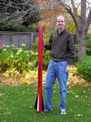 Weighing in at 6lb 10oz, 5ft 4in height, 3in diameter, the CraterMaker is by far the most ambitious scratch project I have ever attempted. It is also my first rocket designed for I and J motors. I planned super-sleek fins, which didn't make the project any easier because it pushed the CP forward.