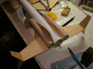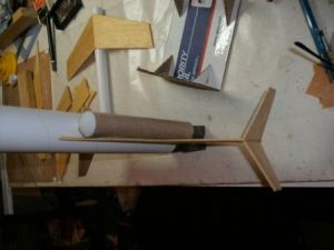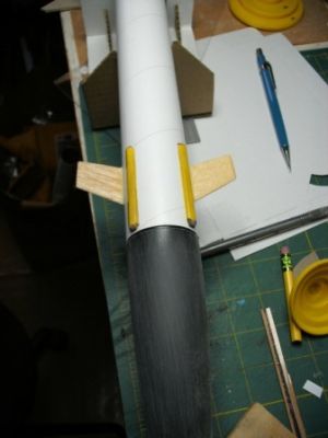 Next, glue the two canards to the sides of the main body tube 1" from the front of the tube.