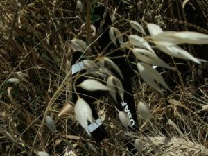 I glued the fins back on that evening and returned to the field on 5/23/09. The second flight was on a D12-5, again with just the booster (Flight #2). This flight was a complete success. The rocket climbed out with authority and flew very straight. The parachute deployed at apogee and did not tangle. The rocket descended gently to a soft landing (Safe Landing). For the third flight I again used a D12-5 and attached the glider. The takeoff and climb-out were straight and true (Flight #3). The glider had no negative effect on the rocket's performance. The ejection occurred at apogee and the glider separated cleanly. The glide was uneven. The glider was stalling, but it looked to me that it just needs some fine tuning. The winds were shifting and gusting from 5-10 mph at this point so the rocket drifted into a nearby wheat field. It took a while to find in the tall plants (glider landing) but with the help of my friends we recovered the rocket and the glider.