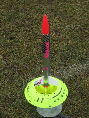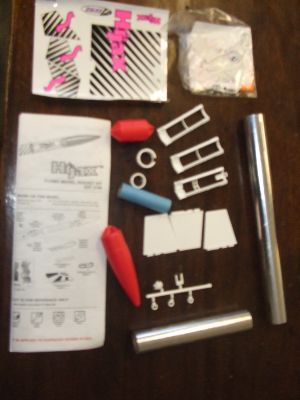 A kit bash between two Estes kits: A RTF Snitch and a Hijax kit. The Snitch will be the booster and the Hijax, the sustainer.