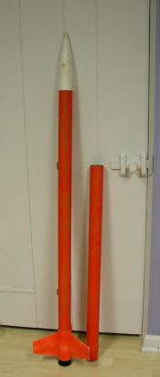 Photo courtesy of Giant Leap Rocketry     This is a single-stage super-sonic capable dirt-simple HPR rocket. A great HPR certification kit for L1 and L2. The kit comes with 1 body tube (phenolic or optional fiberglass extra $$), a 3-fin Acme Fin-can (very solid and easy to install), and is minimum diameter so there's no need for centering rings. The body tube is the motor ...