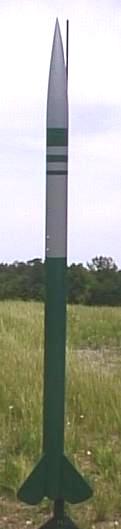 Just before apogee, the initial RRC² charge fired. The momentum of the ejection at the mid-section also popped the nose cone out of the upper section, thereby deploying the main chute. As I chased this across the field, at about 300 feet I heard the secondary channel discharge. Then this rocket drifted into a tree, 60 feet up, where it stayed for four attempts over a 5 week period. I did finally get it back though.