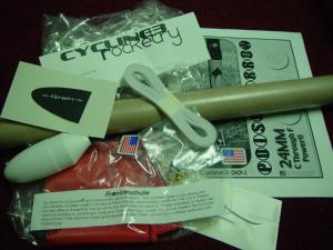 Rocket PicThis kit calls for a very unique method of creating an engine tube centering ring with Polyurethane glue. Like the other Cycline3 kit I built, it does not come with a thrust ring or engine clip. With this rocket, I decided to add a 24mm thrust ring and D length engine clip, as well as two cardboard centering rings, all pulled from a Mean Machine kit. I also added a 30" piece of Kevlar® 100# test cord.