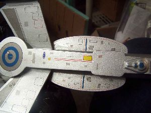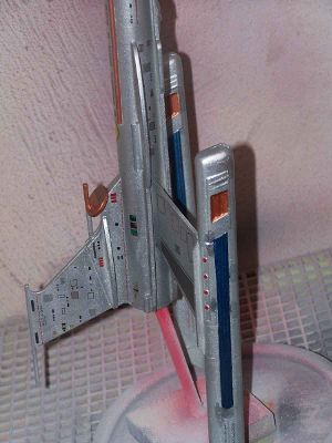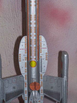 I decided to use some bright red paint to highlight the dots running along the outside of the nacelles. I used Model Master and applied it with a brush.