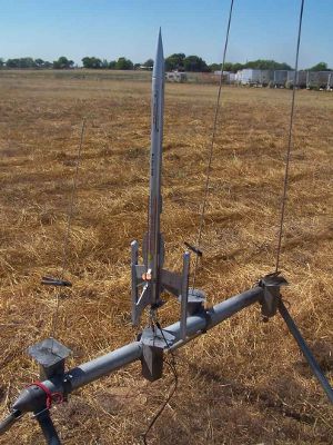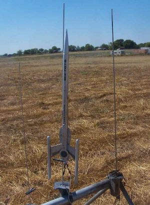 The day of the maiden flight of the Refit Atlantis arrived and it was prepped with a D12-5. People wanted to see this one. On takeoff, it weathercocked a bit but was very stable. It ejected and recovered not far away. I wanted to try it on something bigger.