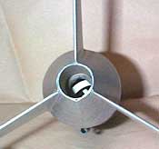 Fins: Use a standard Fat Boy fin for a template and design and cut your templates for through-the-wall. Maintain the dimensions of the standard Fat Boy, but keep in mind that more fin will be exposed just because of the boat tail. If you do this right, about 1/4 inch of fin will be extended onto the vertical part of the main body tube. You will have to decide how long you want to make your fin extensions to the engine tube. I made mine pretty much all the way from front to back and cut a slit in the extension for the aft centering rings. I have lost the template I used, so I don't have a current sketch. If anyone really struggles with this, ask and I will re-create my fin template for you. Cut slits 120 degrees apart opposite to the three support struts and test fit then glue the fins. Add glue fillets when dry.