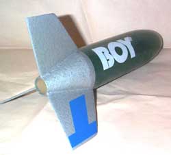 Modified BoatTail FatBoy with a D engine mount, sturdier construction throughout, and better fly-ability with a boat tail. The basic dimensions of a stock Fat Boy were maintained for both body length and fin shape and size.