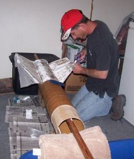 Since this was going to be my first fiberglassed project, I researched and then decided to go with Aerosleeves on this project and got some 10oz cloth from them which arrived quickly and turned out to be very nice stuff. All other supplies to include more fiberglass, 1" tubular nylon, and hardware were obtained locally. I began with my first try at fiberglassing using the Aerosleeves over the 6" body tubes, after these had tacked up some, I applied another layer of 2oz Sig cloth for a finish layer.