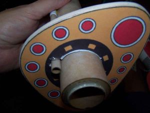At this point, the aft bulkhead consisted of a piece of 1/4" balsa with a hole in it and the color plate glued to its surface. I started to shape it up by using an X-Acto saw to trim off the corners and remove bulk material. A belt sander was then used to shape it to the outline of the color plate.