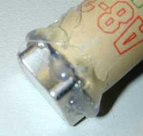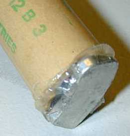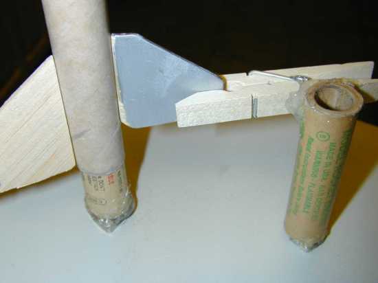 The magnet is glued to an expended motor casing (below left) to make the holder for the rocket body. A relatively "stronger" magnet is used here in order to be able to support the main body of the rocket.