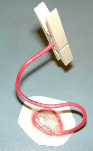 attached to a relative heavy wire. This can be bent to position the clamp and