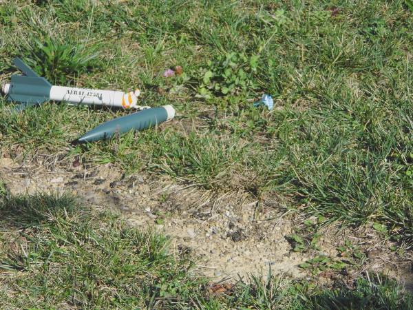 Second flight for this rocket was an hour later and under full power with a D12-5. Rocket absolutely screamed of the pad. This time everything worked as planned. Recovery was a very long walk and I ended up catching a ride with the "Mule" driver as rocket landed near the pond at the end of the campgrounds about a 1/2 mile down range. In spite of landing in gravel, the only damage was a couple of paint chips on 2 fins from impact. Super cool flight and one beautiful flyer.