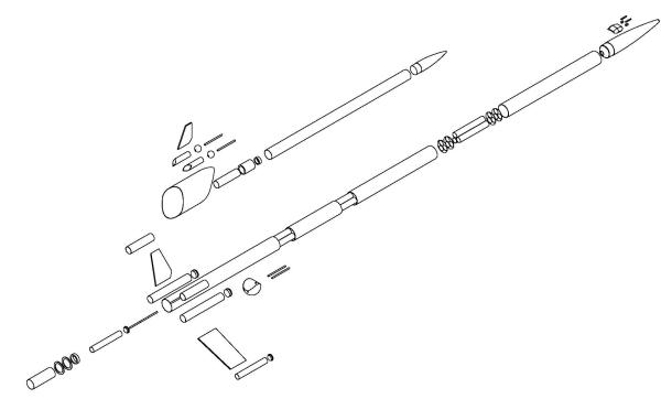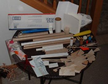 PartsI opened up my box-o-parts with much anticipation. Here is a picture of the contents. Wow! Lots of stuff, now what to do with it. Looking through it further, There sure are a lot of tubes, and not a whole lot of balsa. This is begging to be a tube intensive rocket.