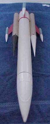 The premise of this rocket is that a warlike race of aliens from a distant star system has pirated a Silver Comet. Finding its navigation and sensor systems superior to their own technology, they keep those sensors but modify both the weapons and propulsion systems. (For the future paint scheme, picture a battered Silver Comet up front, fading to a blackish green-metallic with weld lines indicating the alien modifications.)