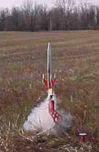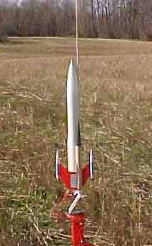 I loaded the rocket with two outboard B6-0s and a central D12-5. I used ample dog barf wadding and prepared the chute. I launched from an Aertotech Mantis pad with a four-foot ¼ inch rod. I also used my new clip whip made from heavy-duty clips and heavy gauge wire-to many misfires lately with speaker wire and micro clips.