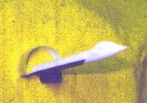 Third flight was attempted with an A10-3T. At ignition, the engine CATO’d, firing the entire propellant upwards through the body, knocking the nose cone off, then continuing upwards in a flaming mass. The casing was fired backwards, dinging the rear edge against the lip of the blast deflector, and landing in the grass about 5 feet from the pad. Inspection showed absolutely no damage done to the Starbow. Very lucky!