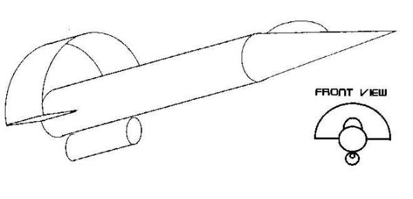 After the Acquisition Wars, the remaining Corporations assumed many of the responsibilities formerly reserved for national and planetary governments. Shown is a representative of the STARBOW class of ships, used for long-range transportation and colonization by the IBM/Microsoft/McDonalds/Mitsubishi Corporation. A happy accident of physics necessitated placement of the sensor arrays in the arcing structure above, well away from the distorting field effects of the low slung engine hull, and coincidentally providing this ship with one of the most elegant designs ever to grace a human starship. Crew and passengers were housed well forward, while the long boom contained fourteen vast cargo holds.