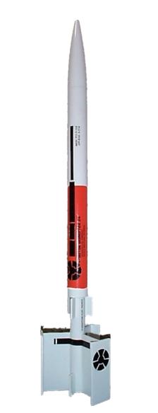 This is a futuristic design, 18mm engine, 2.7 oz., 24 inches long, 1.3 inch diameter, parachute recovery. It is now obsolete, but still available in surplus outlets.