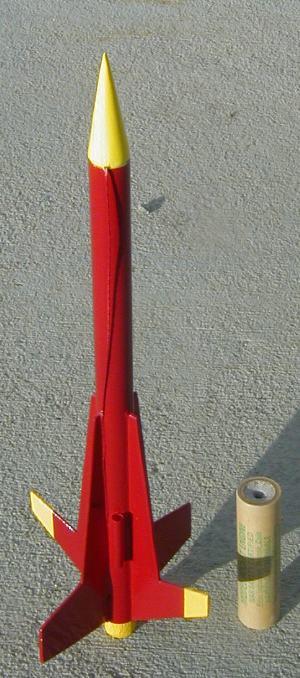This is a 4 fin, futuristic, lightweight 10" rocket with streamer recovery