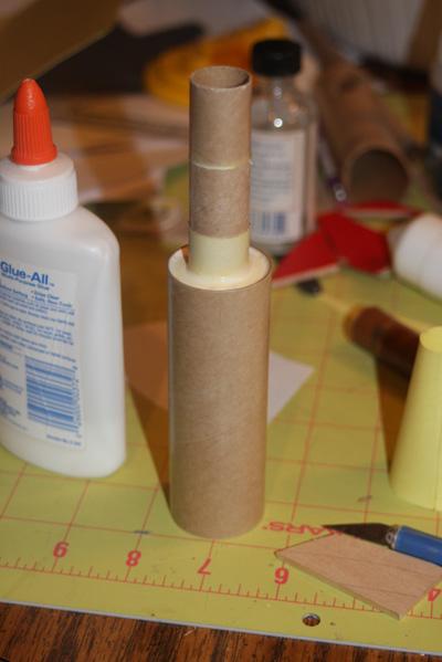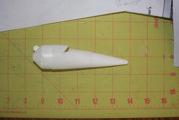 Clearly, this was still tail heavy and needed the CG shifted forward a bit. I achieved this two ways. I wanted to avoid adding too much weight to this, so I temporarily taped a 1" length of body tube to the front and added another piece of clay with a few computer screws added in for good measure. All told, I think there is about ¾ oz. in the nose. The added length is just one more stretch away from the scale factor, but most of importantly, I wanted this to fly properly. Heck, major rocketry vendor take those liberties with scale all the time. In the name of not letting all my hard work go to waste, I figured, I should too.