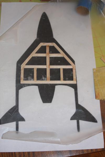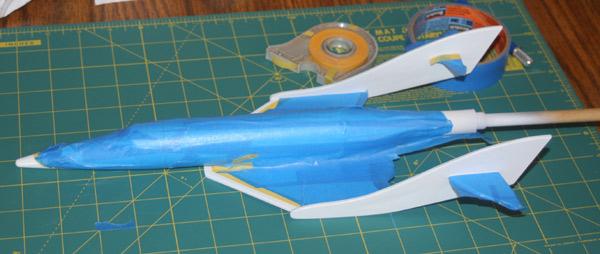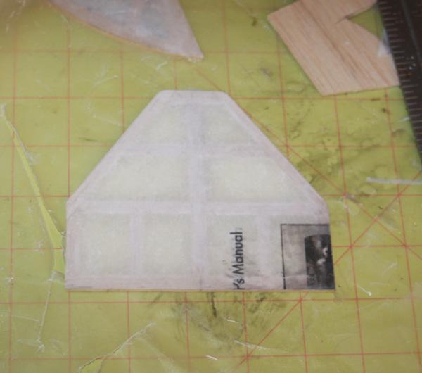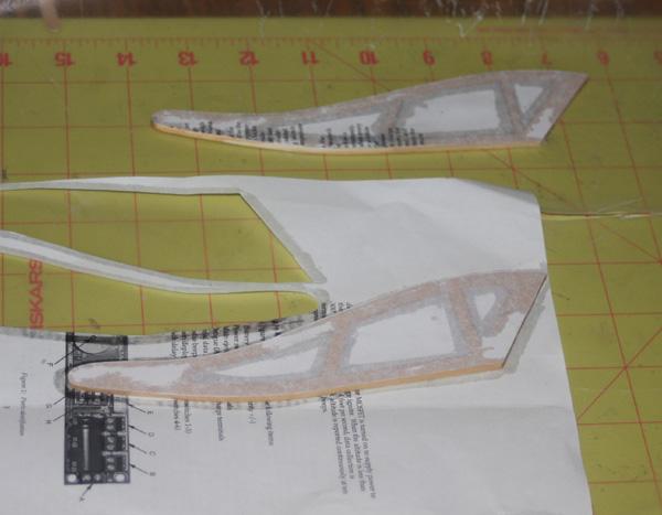 Next, I glued the vertical stabilizers the wings using the profile printout shown here to help with alignment (this is the same printout used to create the stabilizers earlier).