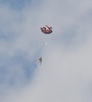 It still needed a recovery device. I installed a piece of elastic and tri-fold anchor to the inside of the tube. Two pre-made Estes chutes were included in my box, one 18" and one 24". I chose 18" and cut a large spill hole. The chute is still a bit oversized, even with the spillhole, but will work just fine for the contest.