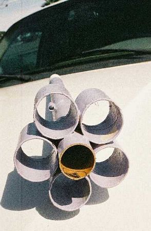 ElCheapoCerto ("ECC") is constructed from 38mm motor tube with 2" postal mailing tubing for the tube