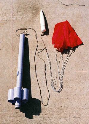 with PerfectFlite altimeter to the side so I could calculate Cd from the altitude achieved (this increases the